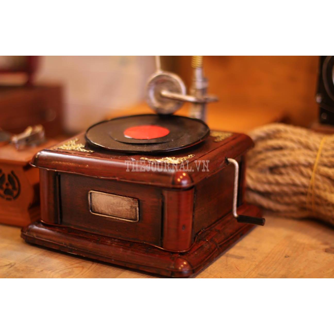 Máy phát nhạc cổ điển (mô hình) với chất liệu sắt được đánh màu vàng đồng nhìn rất chất, thích hợp trang trí quán cafe, shop vintage hay không gian cổ điển của bạn